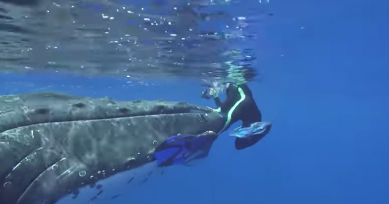 La ballena impulsó a la mujer con su cabeza hasta que su cuerpo quedó totalmente fuera