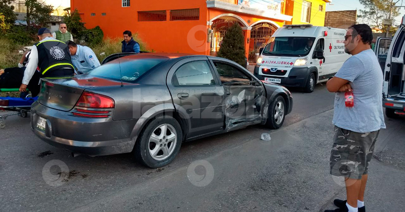 El percance entre un carro particular y una combi de transporte de personal ocurrió en el cruce de las calles Guatemala con Chihuahua.