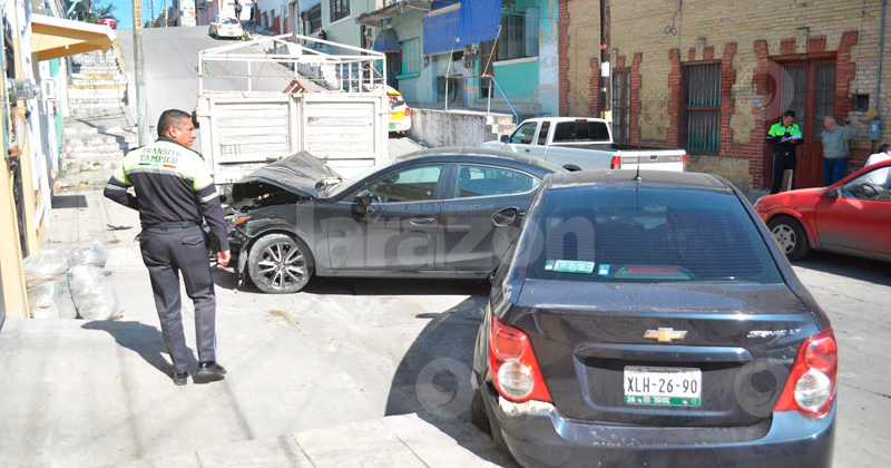 Se queda sin frenos e impacta a dos unidades
