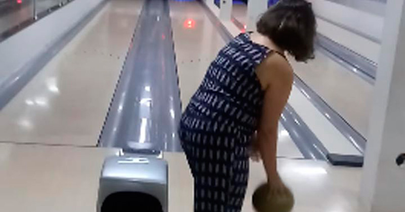 Las imágenes fueron tomadas en Brasil y muestran el momento en que estrella su bola de boliche contra una televisión