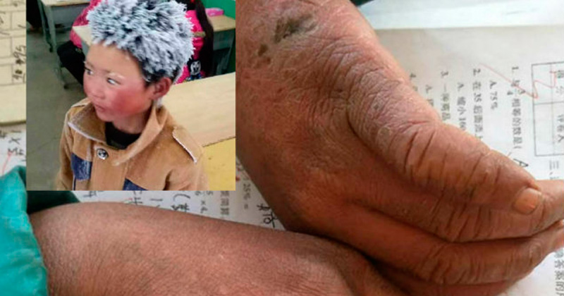 No sólo se le congela el cabello, todos los días llega a clases con las manos lastimadas