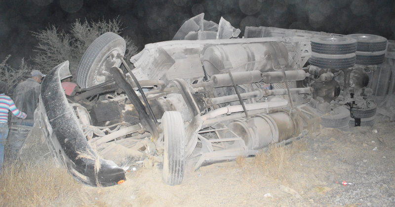 El camión se fue arrastrando por espacio de 20 metros y quedar sobre el costado del piloto.