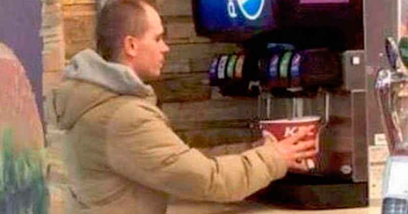 Hombre utilizó la cubeta de pollo para servirse refresco