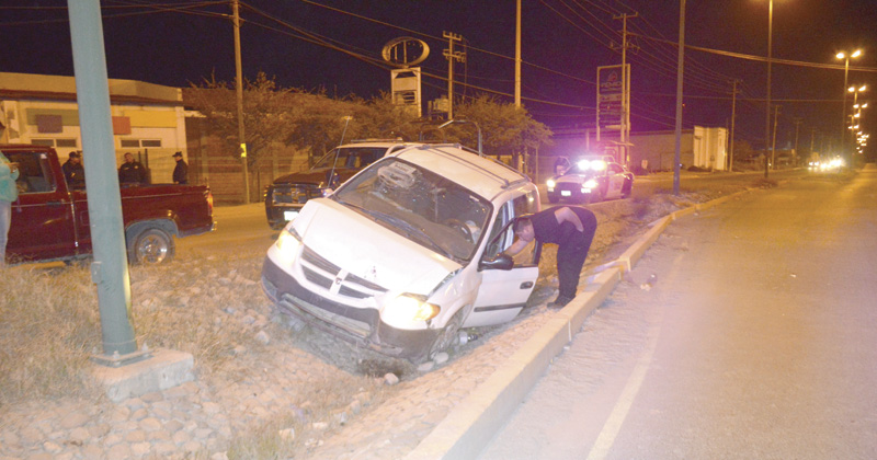 Conductor se sale de camino y se voltea en dren pluvial frente a Complejo de Seguridad
