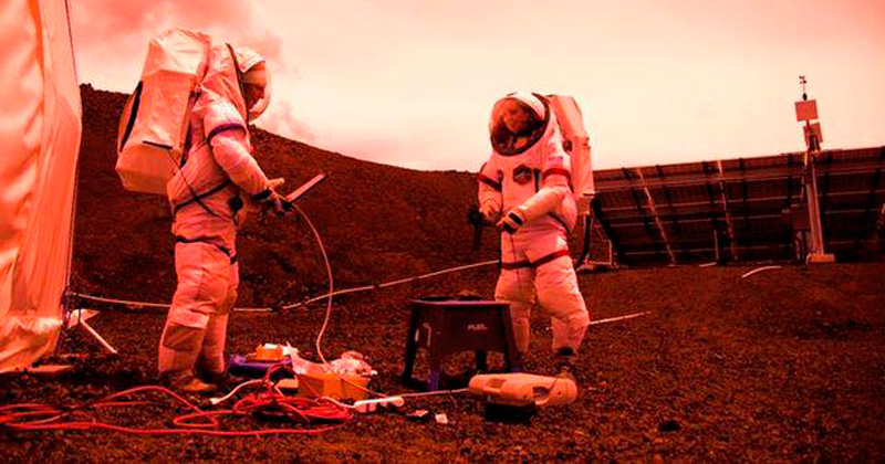 Astronautas dan nueva mano a brazo robot espacial