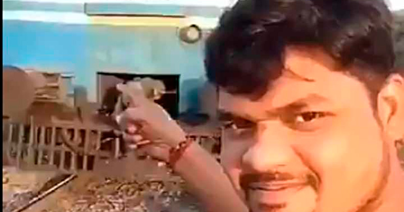 El momento fue captado en India, donde se ve al hombre frente a las vías del tren y este lo golpea por intentar tomarse la foto.