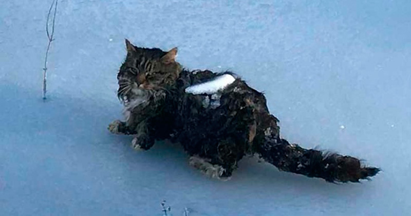 Fue encontrado con las patas traseras y la cola totalmente congeladas