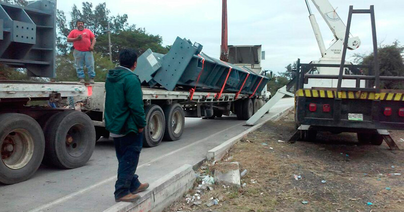 Cargado con rollos de acero el conductor intentó tomar el Puente cuando ocurrió el percance