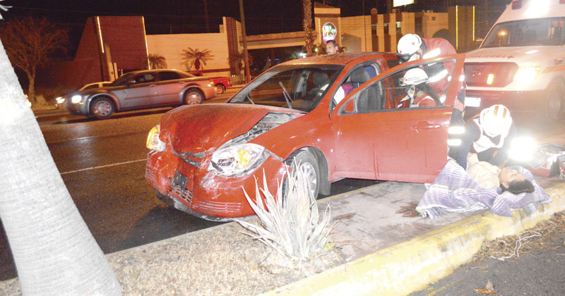 CIUDAD VICTORIA, Tamaulipas.- Un conductor que intentó ganarle el paso a una mujer acabó por lesionarla en un aparatoso percance vial que se registró anoche en la avenida “José Sulaimán”.