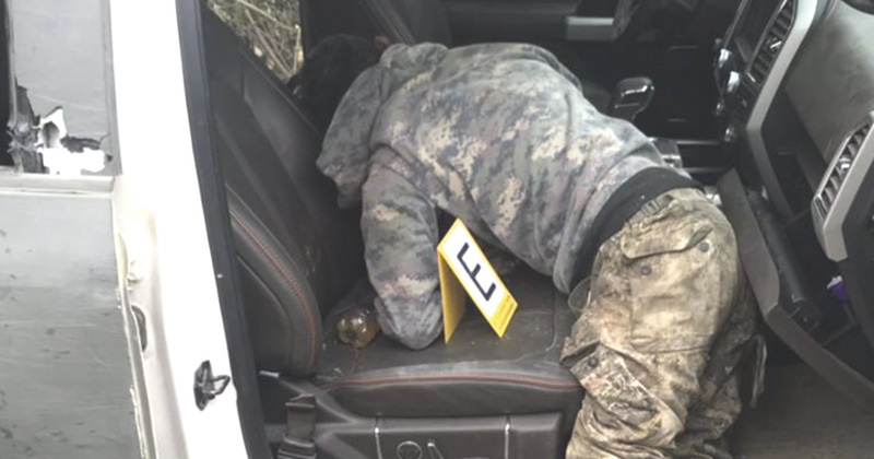 Fue ya tarde-noche cuando los elementos castrenses se coparon con dos camionetas pick up, una de ellas pintada de verde similar al color que usan las unidades de la Sedena.