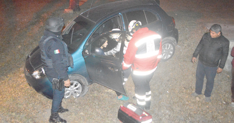 Joven mujer toma mal la curva en su auto March y cae a cuneta, anoche en bulevar “Emilio Portes Gil”, frente a campos del Ipsset