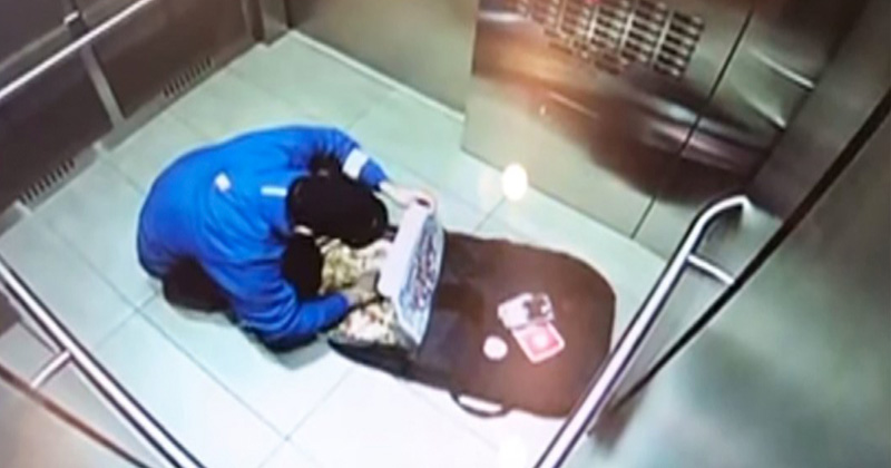 Un trabajador de Domino’s Pizza fue captado por las cámaras de seguridad del elevador de un edificio residencial