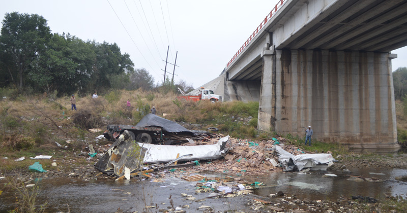 La unidad se desplazaba a exceso de velocidad y aunado al peso se desprende un contenedor que termina en el fondo del río Corona
