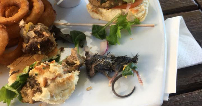 Una pareja acudió a un reconocido lugar de comida rápida, pero la hamburguesa solicitada llevaba un ingrediente extra, un ratón muerto