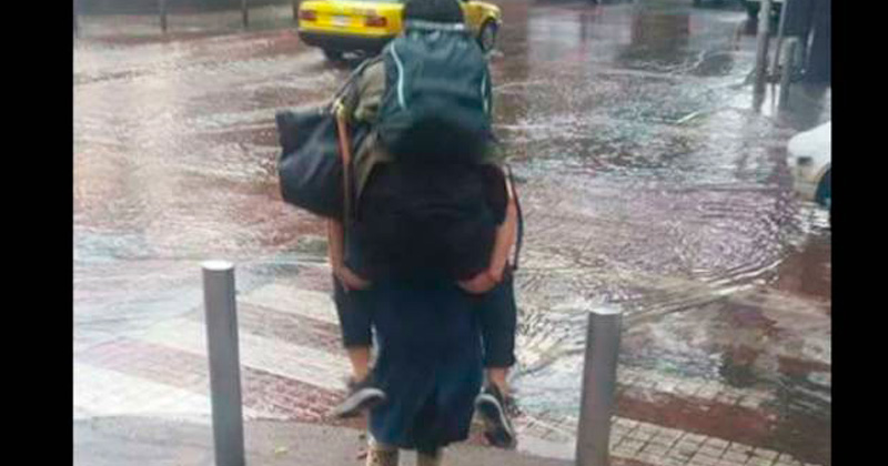 Esta chica cargó a su novio para que no se mojara en un charco