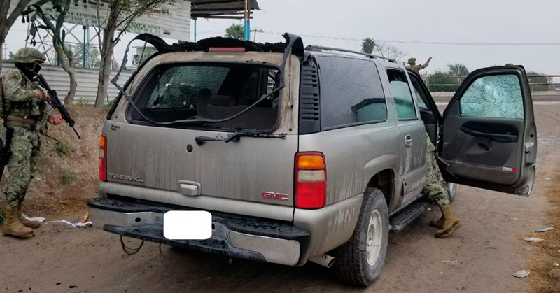 Metros más adelante, se le dio alcance a 5 de los agresores quienes dijeron llamarse Jesús Salvador “N”, Octavio Roberto “N”, Rubén “N”, Jorge Andrés “N” y Jesús Eduardo “N”, además de asegurar tres camionetas, una GMC Yukon XL color arena, una Chevrolet Traverse color gris y una Chevrolet Suburban color rojo, todas con placas del estado de Texas.