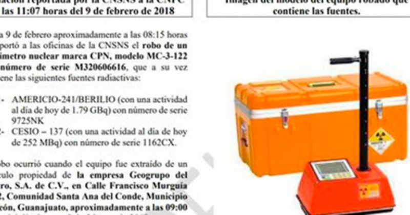 Emiten alerta en siete estados por robo de fuente radiactiva