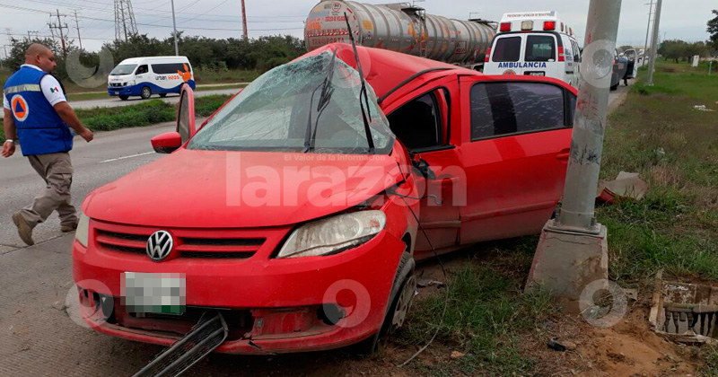 La conductora y sus dos hijos fueron auxiliados por un equipo de rescatistas de la Cruz Roja y trasladados a un centro médico en Tampico