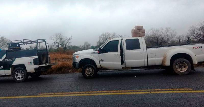 En tanto, unos tripulantes de una camioneta Ford Super Duty, color blanca y de cabina y media se acercaba a ellos, pero al percatarse de la presencia de la autoridad, estos pararon y decidieron regresar para meterse a una brecha y finalmente dejar en el abandono la unidad.