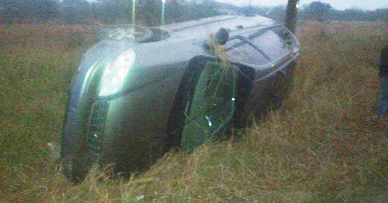 Residente del ejido Sandoval pierde control de la camioneta y la unidad motriz termina con los neumáticos hacia arriba