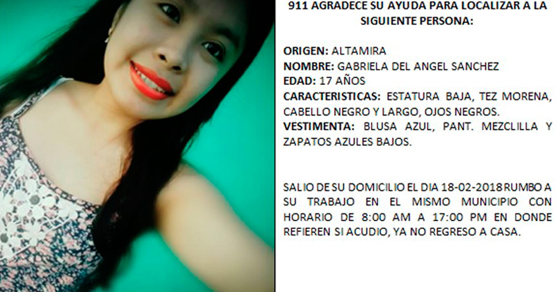 La mujer fue identificada como Gabriela del Angel Sánchez, de 17 años de edad, residente del municipio industrial