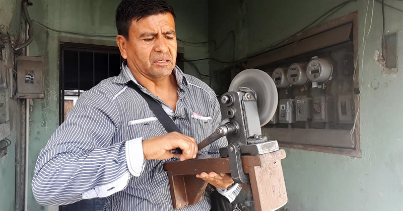 Arturo Amescua es la tercera generación en el oficio de ‘afilador’, el cual está en peligro de extinción