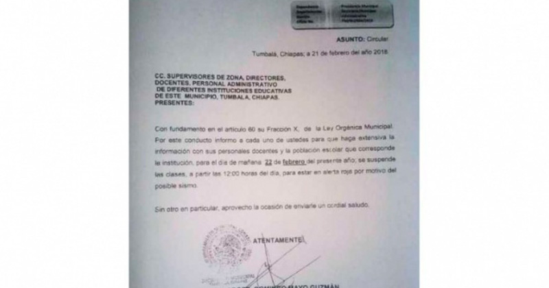 Suspenden clases en Chiapas tras ‘predecir’ sismo