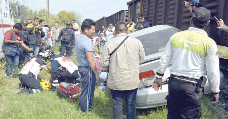 Trataron de ganarle el paso a la locomotora y no lo logran a la altura del Eje Vial; la mujer se encuentra delicada