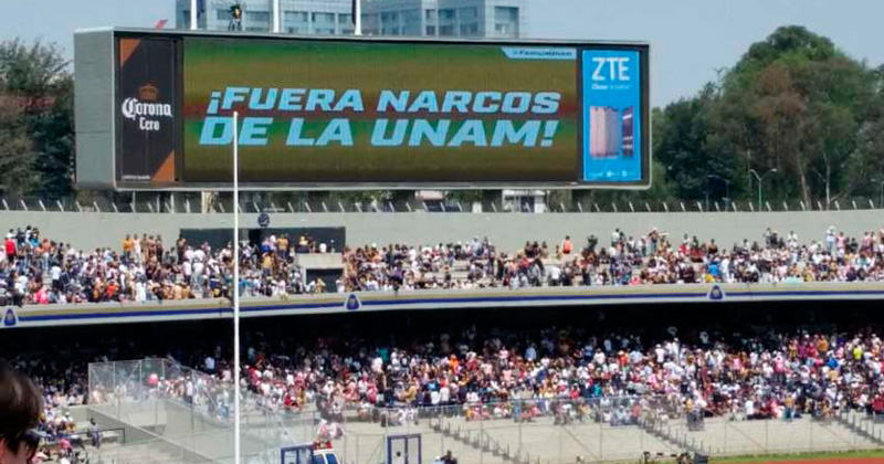 ¡Fuera narcos de la UNAM!: mensaje en pantalla del Universitario