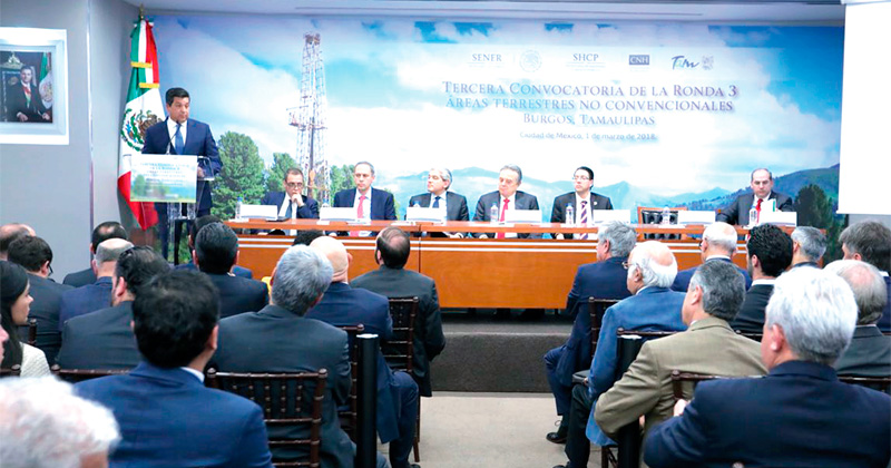 El Secretario de Energía, Pedro Joaquín Coldwell, y el gobernador Francisco García Cabeza de Vaca, presentaron la convocatoria para explotar hidrocarburos en la región, donde se invertirían 2,300 millones de dólares