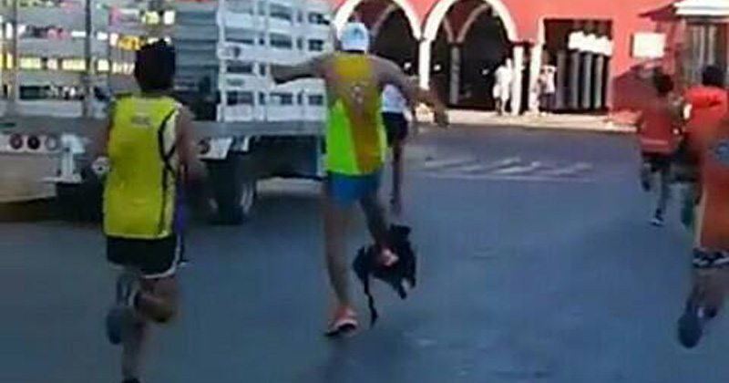 Identifican al competidor que agrede a un canino que le ladró durante la carrera disputada en Valladolid, Yucatán