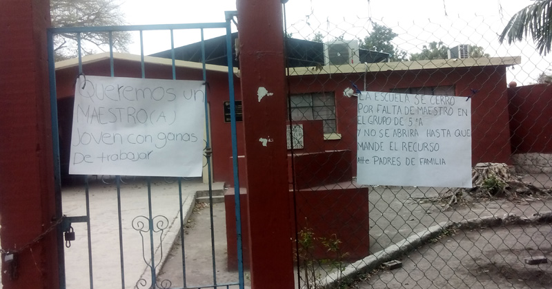 MANTE, Tamaulipas.- Como lo habían anunciado, padres de familia de la escuela primaria «Ricardo Flores Magón», ubicada en la colonia Vicente Guerrero, tomaron esta mañana las instalaciones del plantel como medida de presión a la falta de maestro.