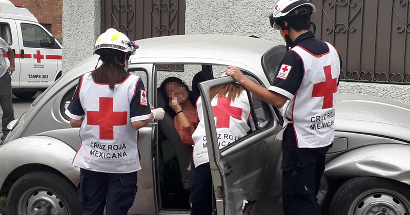 La mujer viajaba de copiloto en un miniauto que se trepa a camellón y se estrella contra una barda, luego que omite el alto en el 5 Guerrero y es impactado por un Sentra