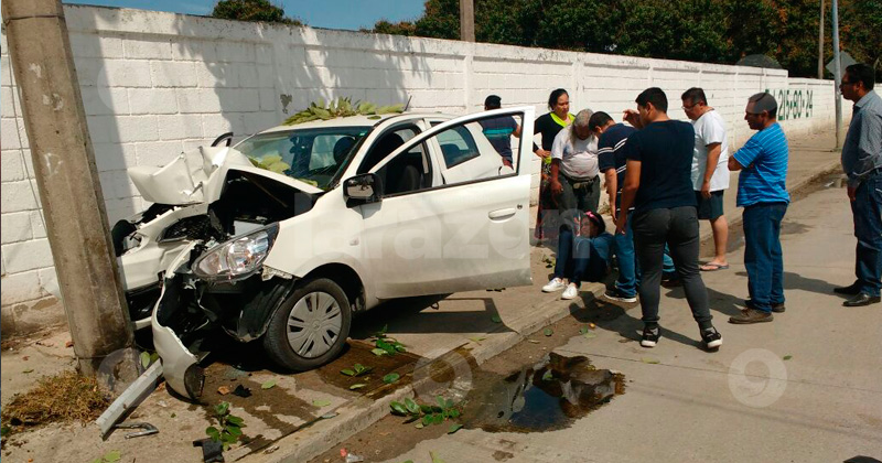 La joven conductora se desplazaba a velocidad inmoderada y terminó impactándose contra la estructura de concreto