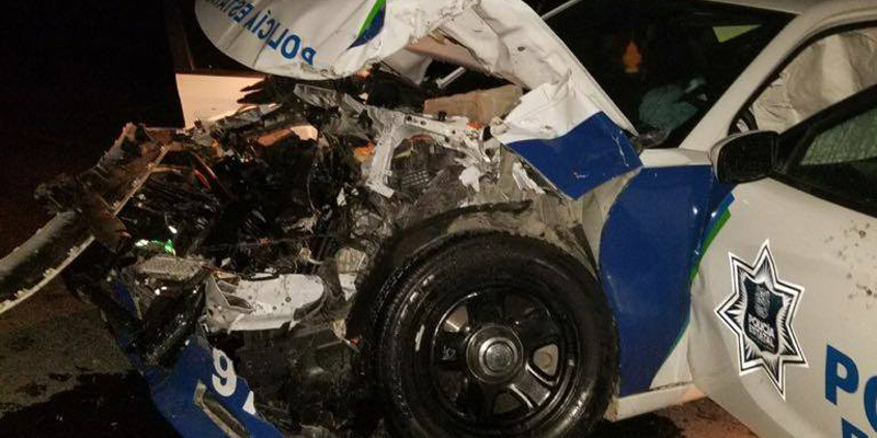 Una de las patrullas de la Policía Estatal resultó con varios impactos de bala y una más chocó, resultando como saldo cuatro elementos heridos de gravedad.