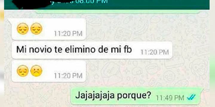 ¿Cómo reaccionó? Una joven le dijo a su amante por WhatsApp que su novio lo había borrado de su Facebook y lo que hizo luego dejó a todos en shock.