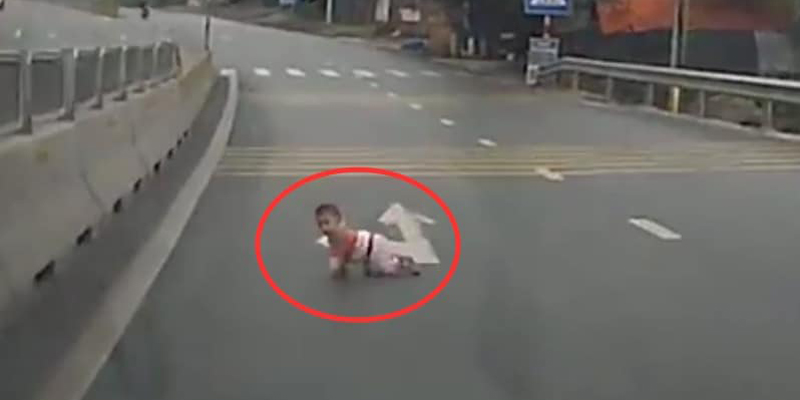 Bebé gateando atravesó una avenida y de milagro se salvó