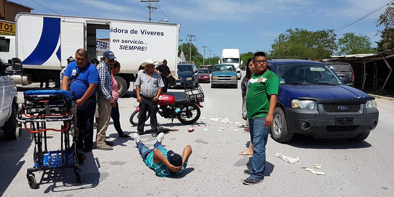 El accidente se registró en la avenida 250 Aniversario y Niños Héroes de la colonia Bella Vista Norte, hasta donde acudieron los paramédicos de la unidad de Protección Civil, para proporcionarle los primeros auxilios.