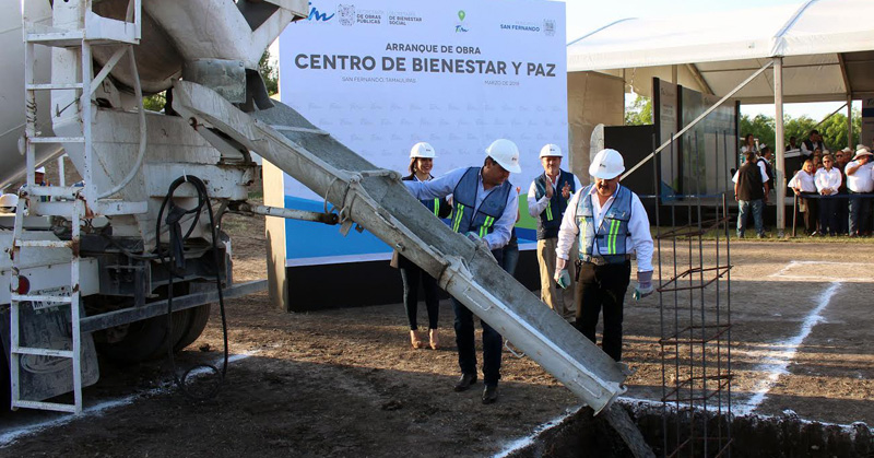 En gira de trabajo por San Fernando, el gobernador Francisco García Cabeza de Vaca y el alcalde José Ríos Silva iniciaron en la colonia Obrera los trabajos para la construcción de un Centro de Bienestar y Paz.