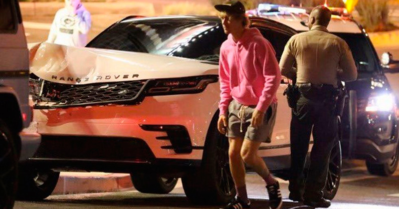 Bieber, quien vestía una sudadera rosa, fue visto examinando la parte trasera de su camioneta