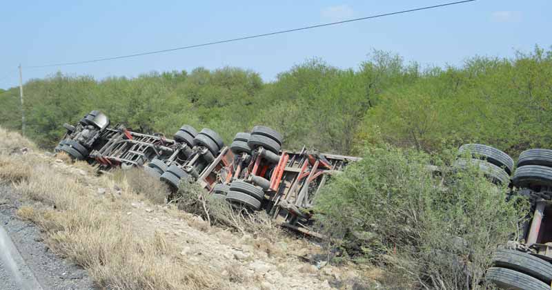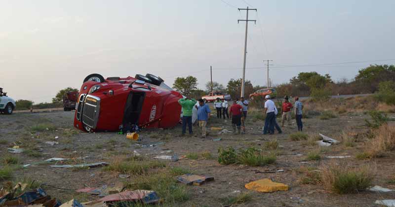 Tráiler transportaba 50 toneladas de fertilizantes para plantas de sandía y melón y se vuelca en la carretera a Zaragoza