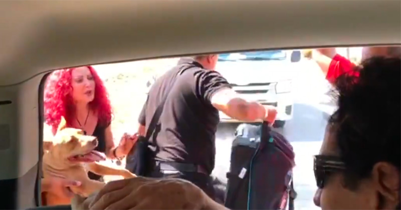 Chela y Alex Lora rescataron a una perrita que corría por la carretera detrás de un vehículo de quienes supuestamente la abandonaron.