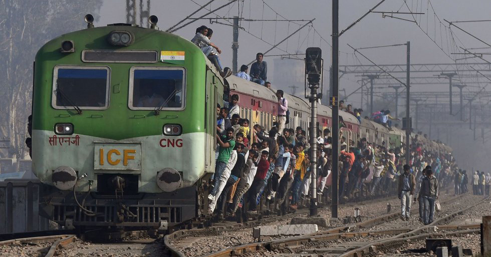 Un tren lleno de gente en India recorre marcha atrás y sin guía