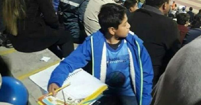 Compatibilizar las responsabilidades con las aficiones puede hacerse complicado. Por eso, este niño ecuatoriano decidió llevarse al estadio las libretas de la escuela.