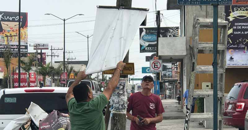 Personal del área de ingresos realiza un operativo para poder retirar la publicidad sin permiso en diferentes partes de la ciudad.