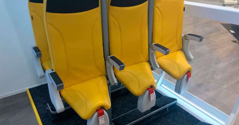Dentro del marco de la Aircraft Interiors Expo, una feria enfocada a utensilios y mobiliario para aviones, la compañía Aviointeriors ha presentado el culmen del aprovechamiento de espacio para aerolíneas de bajo coste. Bajo el nombre Skyrider ha dado a conocer unos asientos que se salen de lo convencional para ofrecer a los «afortunados» clientes un vuelo que se efectuaría en una posición a medio camino entre estar de pie y estar sentado.