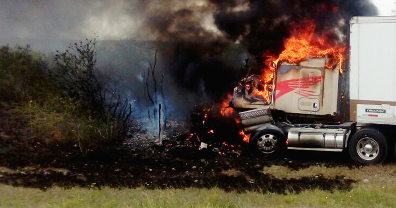 CIUDAD VICTORIA, Tamaulipas.- Un operador de tráiler se salvó de morir calcinado después de que el camión se incendió cuando éste circulaba sobre la carretera Matamoros – San Luis Potosí.