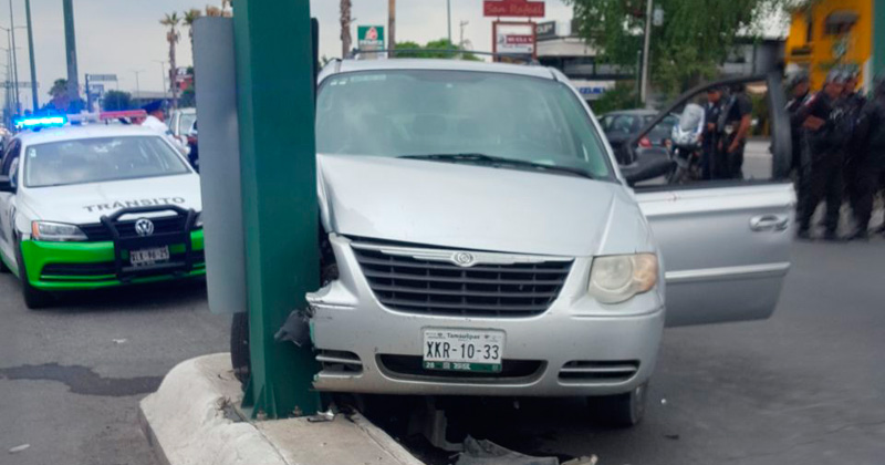 Luego de ser agredido sube a su vehículo y sale en busca de ayuda, pero en el trayecto choca contra la base de un semáforo en el ocho Zacatecas.