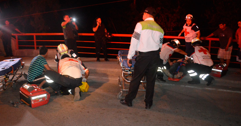 Quedan muy graves al derrapar la motocicleta en que viajaban y estrellarse contra el asfalto, en el puente ubicado a la entrada de la colonia Unidad Modelo