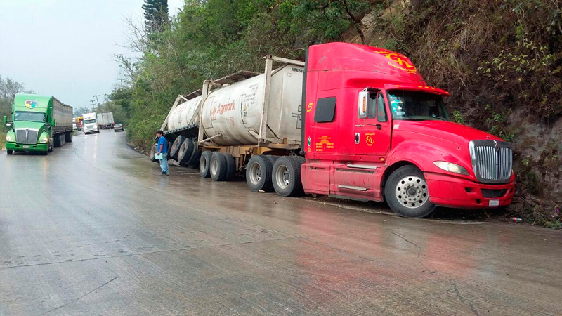 El cerro donde quedó volcado el trailer evitó un percance mayor